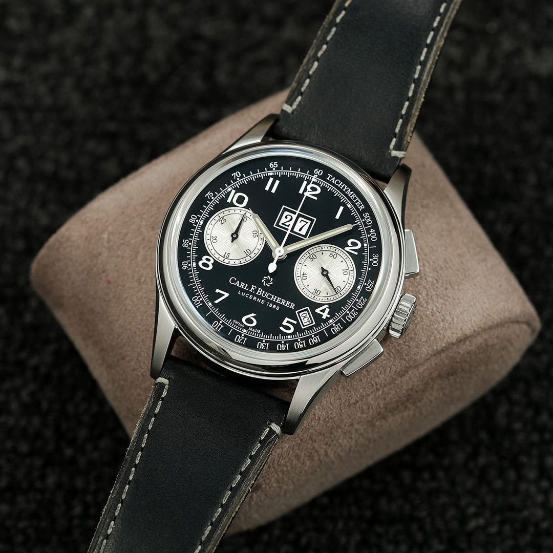 Inspired by the vintage charm of mid-century timepieces, the Carl F. Bucherer Heritage Bicompax Annual brings nostalgic styling to the modern wrist. Its black dial with twin chronograph registers and a large date display offers clarity and grace in equal measure. At the heart of this watch is the in-house calibre CFB 1972, a self-winding movement running at 28,800 bph with a 42-hour power reserve. Based on the reliable ETA 2894-2 module, it offers a bi-compax layout alongside annual calendar and big date complications. Measuring 41mm in diameter and 14.15mm in height, this Heritage Bicompax Annual captures the spirit of 1940s design with contemporary craftsmanship, making it one of the most distinctive chronograph watches available today.