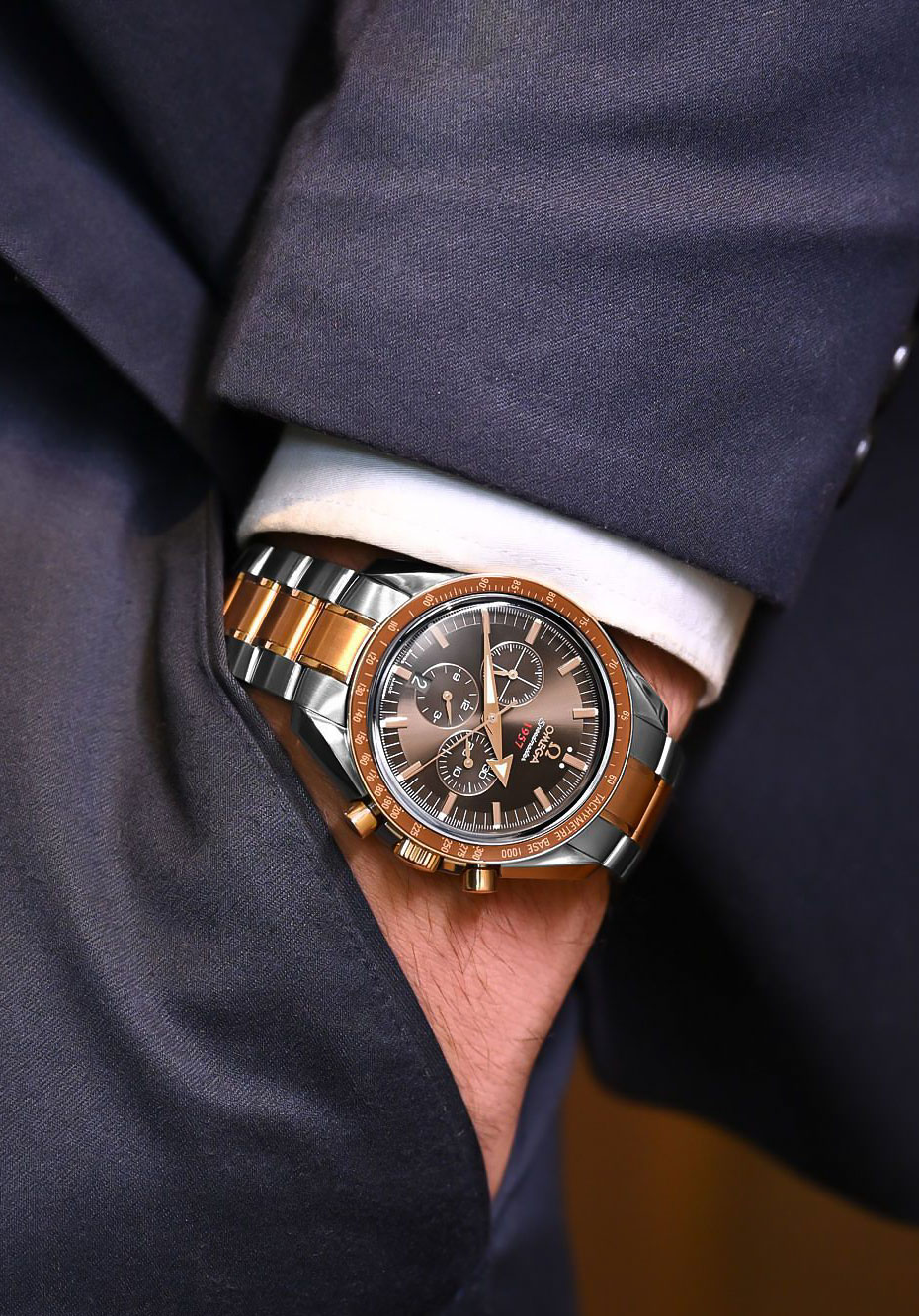 A chronograph is a watch that comes with an innate ‘stopwatch’ functionality. This function is essential for engineers, doctors, technicians, and sports professionals to determine the production rate of a machine or a worker, the speed of a car or a projector, or sports athletes to keep track of their performance – where every milli-moment matters. Watch wearers did not widely use this feature until the 1970s and Speedmaster was one of the frontrunners that made its mark as a reliable chronograph timepiece. It was the first watch to place a tachymeter (previously known as T.P.M. or Tacho-Productometer scale) on the bezel and highlight it separately from the dial. This design innovation cleared up space on the dial giving it a more streamlined look. It also helped the sport racing drivers to calculate the speed faster by allowing a quicker reference to the scale.