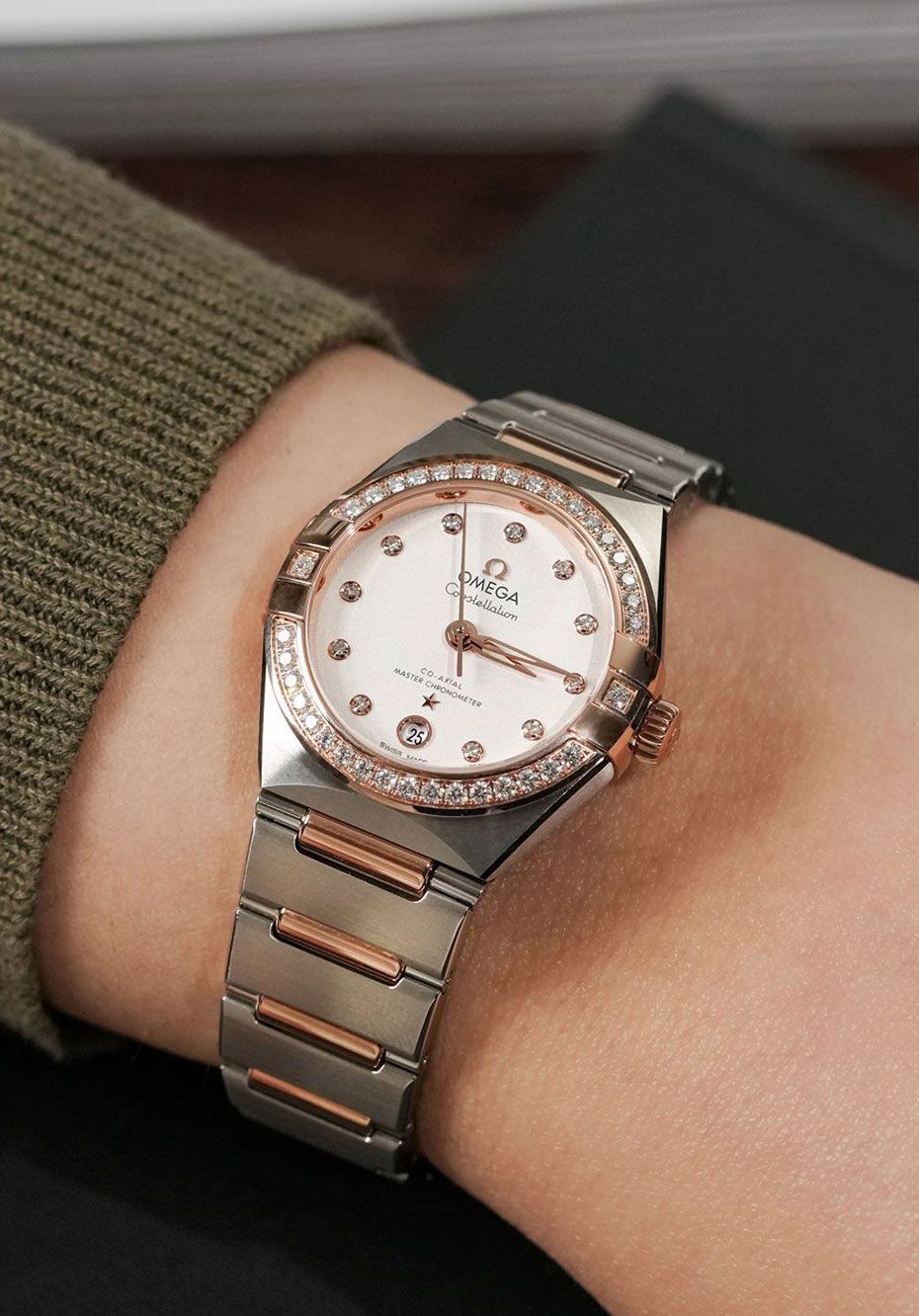 The Chopard L’Heure du Diamant unveiled at Watches & Wonders 2024, epitomises haute joaillerie with horological excellence. Its graceful oval case, meticulously crafted from ethical 18K rose gold is adorned with a scintillating halo of brilliant-cut diamonds. The textured mother-of-pearl dial, punctuated by diamond-set hour markers further enhances its ethereal beauty.