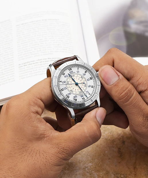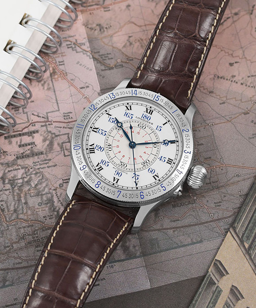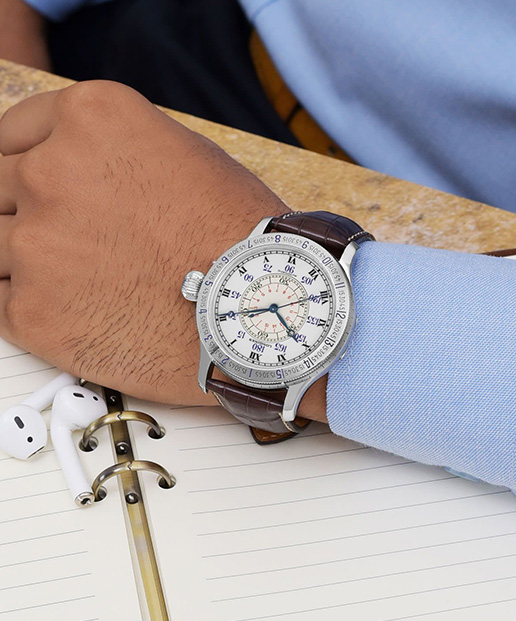 The Longines Heritage pays homage to one of the most significant pilot’s watches in history, namely the Hour Angle designed in collaboration with aviator Charles Lindbergh. Created in the 1930s to aid in aerial navigation, this modern reissue retains the pioneering spirit of the original while refining it for contemporary wear. The 47.5mm stainless steel case mirrors the proportions of traditional pilot instruments, allowing for exceptional legibility. Its white dial, marked with bold black Roman numerals and a clearly delineated minute track, offers a clean and functional layout reminiscent of early aviation tools. Paired with a brown alligator leather strap, this timepiece captures the spirit of early aviation while showcasing Longines’ enduring commitment to precision and craftsmanship.