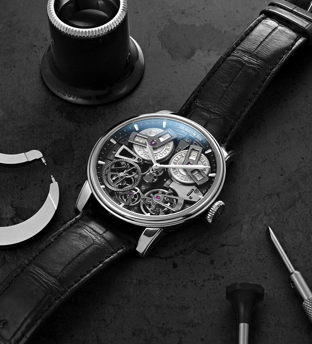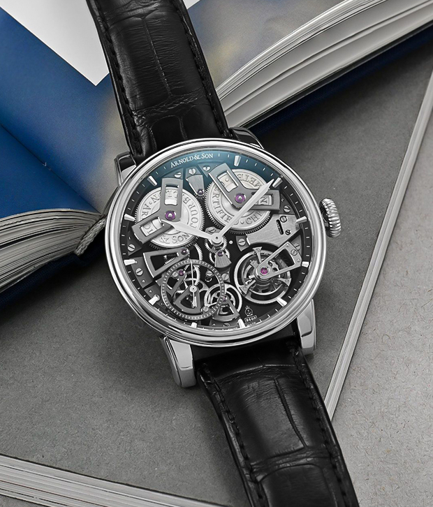 The Arnold & Son Tourbillon Chrono 36 (1ETAS.B01A.C113S-G20A) is a masterstroke of horological ingenuity, and its open-faced dial is a captivating canvas that reveals the inner workings of this commemorative timepiece. This watch pays homage to its illustrious ancestor’s legendary creation, which debuted 240 years ago. This pioneering pocket watch, a milestone in horological history, was the first to bear the prestigious ‘chronometer’ appellation, signifying the highest precision.