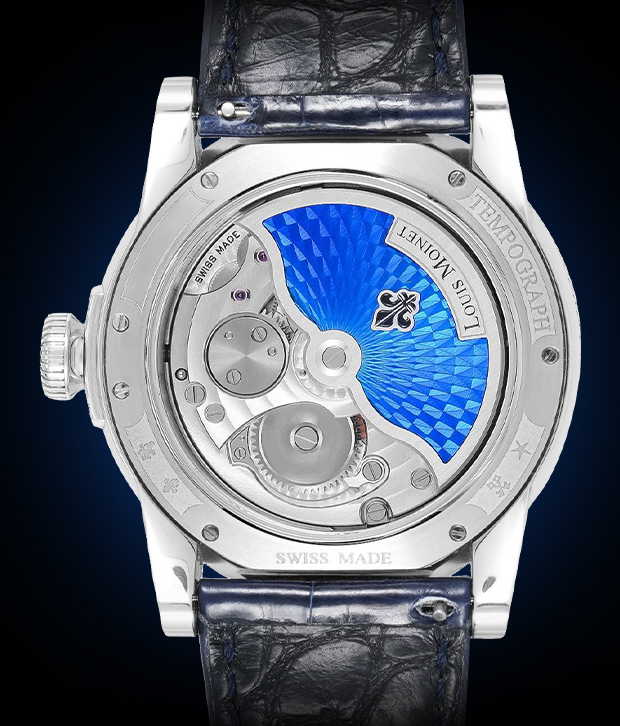 This extraordinary watch also signifies a pivotal moment for Louis Moinet. It marks the first time a Tempograph watch is encased in stainless steel. This case has been reimagined to house the exceptional self-winding calibre LM50. The movement, showcased on the dial, brings a unique complication—the 20-second retrograde—to life, gracefully resetting to zero every 20 seconds. Additionally, a tricolour disc at nine o’clock meticulously measures 60 seconds, thoughtfully segmented into three 20-second intervals.