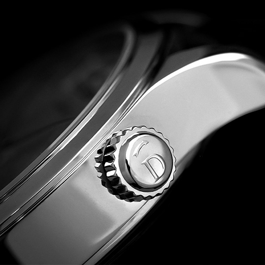 With a curvaceous round silhouette, the case exudes tasteful style and is a delight on varied wrist sizes. A minimalist vein is widespread on the silver dial, from the applied indexes and numerals to the framed date aperture at three. The only colour visible on the dial is the blue-hued seconds hand. However, the highlight of the watch is the alarm function facilitated by the offset crown at two and the central rotating panel with an arrow on the dial. The sound of the alarm is a nostalgic school bell chime. A general feeling of minimalism and Jaeger-LeCoultre’s heritage define this Master Control Memovox.