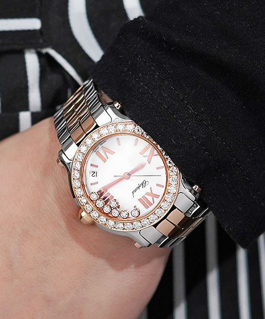 Further adding to the sense of drama and glamour are the signs of Chopard’s supreme craftsmanship. The graceful curves of the case, the lavish use of 18k rose gold and the gem-set crown continue the high-spirited narrative outlined by the gemstones. Also powered by a quartz movement, this Chopard Happy Sport diamond watch promises a seamless time-telling experience in addition to lasting pizzaz.