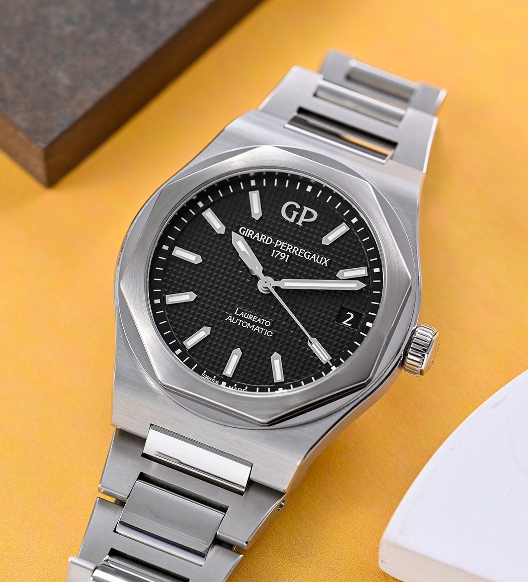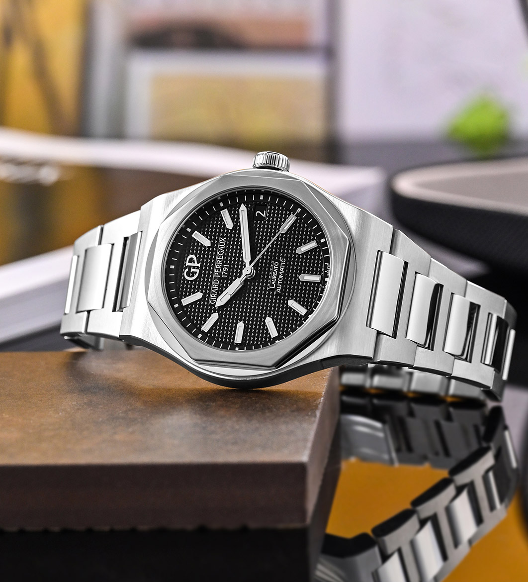 For decades, Girard-Perregaux Laureato has captivated watch enthusiasts with its exceptional features and design. As one of the remarkable elements of the Laureato, the case is meticulously handcrafted in an eight-sided shape. Inspired by the complex architectural design of the Santa Maria del Fiore cathedral in Florence, Italy, the Laureato case features a slim, octagonal bezel with a rounded base that sits neatly on a substantial yet elegantly curved base, into which the horizontal links integrate seamlessly.