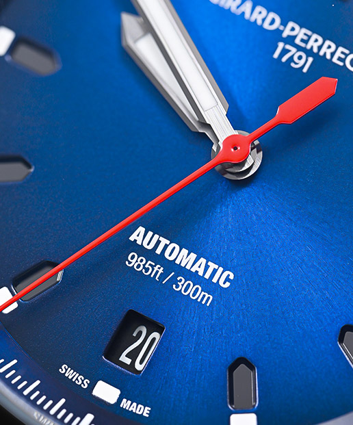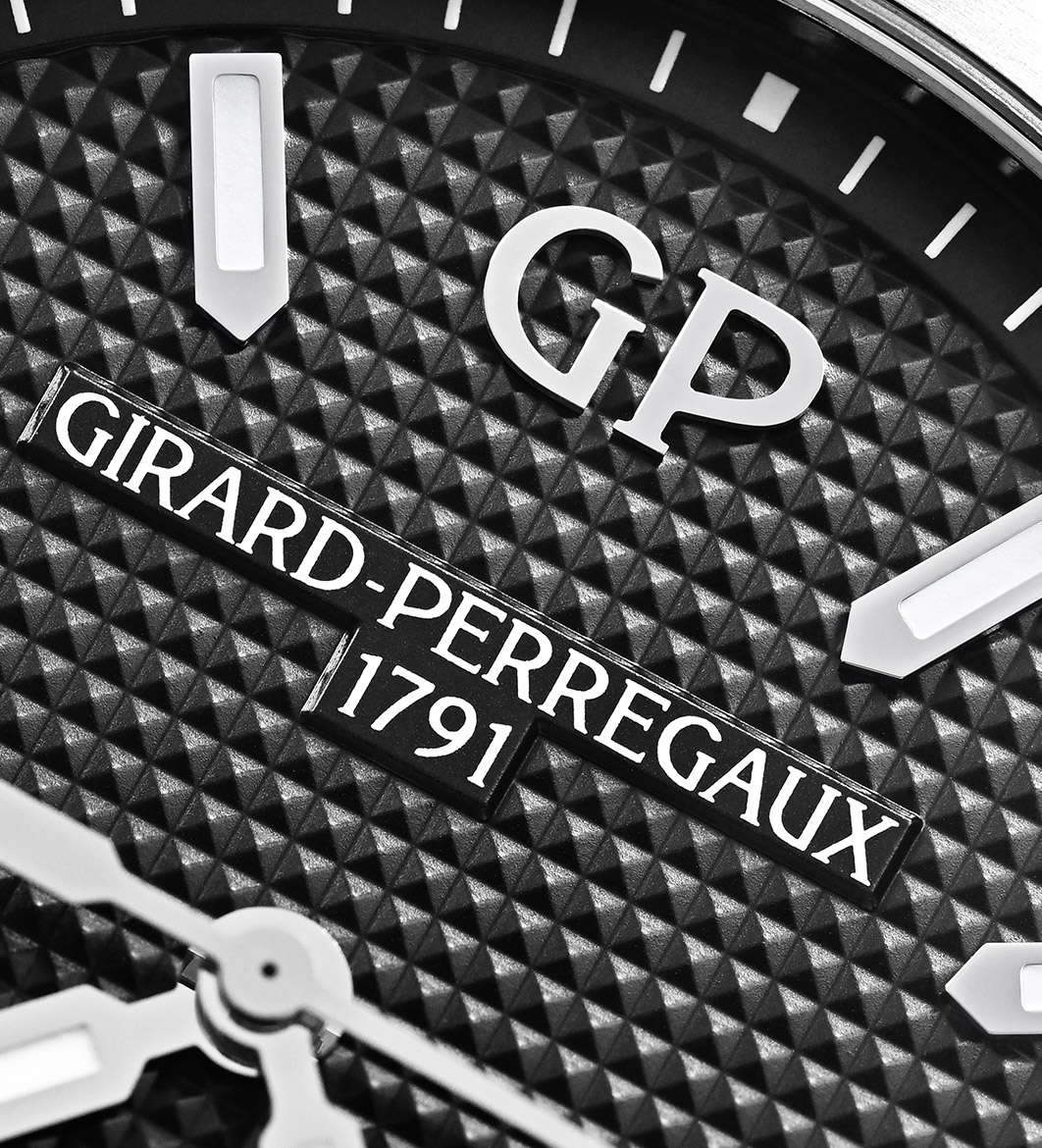 The Girard-Perregaux Laureato pays tribute to this venerable decorative technique with its dial. The pattern adds depth and texture to the dial, catching the light and creating a play of shadows that gives the watch a dynamic presence. The Clous de Paris dial is available in several colour variations, from classic silver to bold blue or black, adding to the versatility of the Laureato collection.