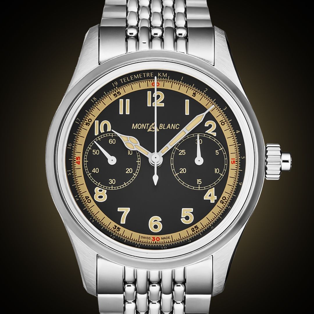 Montblanc treats the complication as an instrument, combining robust case dimensions, railway-track scales, and cathedral hands. The look is military, almost 1930s in character, but the build feels solid and contemporary. It wears well, and the single pusher gives it that direct link to the past.