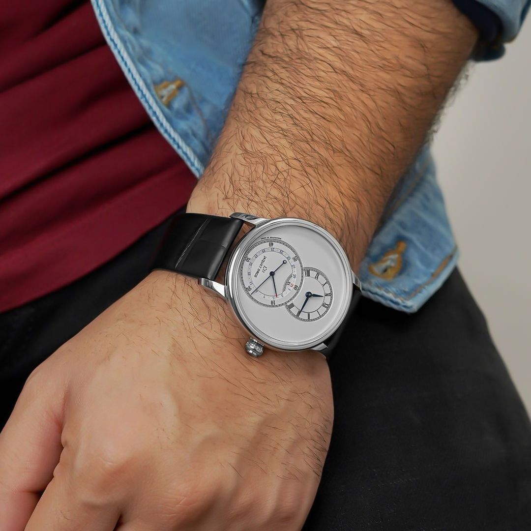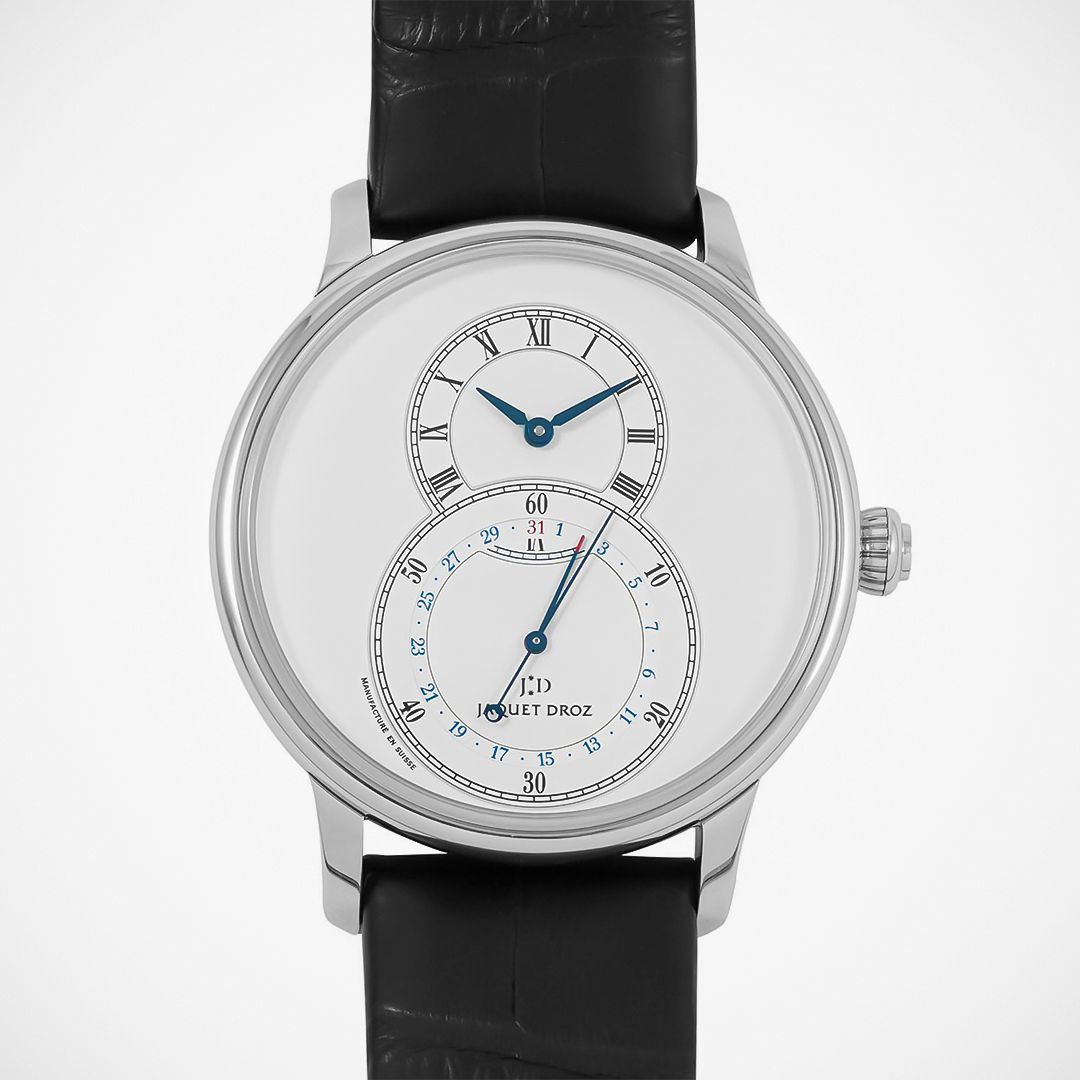 The Grande Seconde watch was launched in 2002 as a modern reinterpretation of a historic Jaquet Droz pocket watch from the late 18th century. The minimalist dial layout placed the off-centre hour and minute sub-dial at 12 o’clock, with the seconds counter at six. The unique assemblage of sub-counters created an eight pattern, now a recognised brand signature.