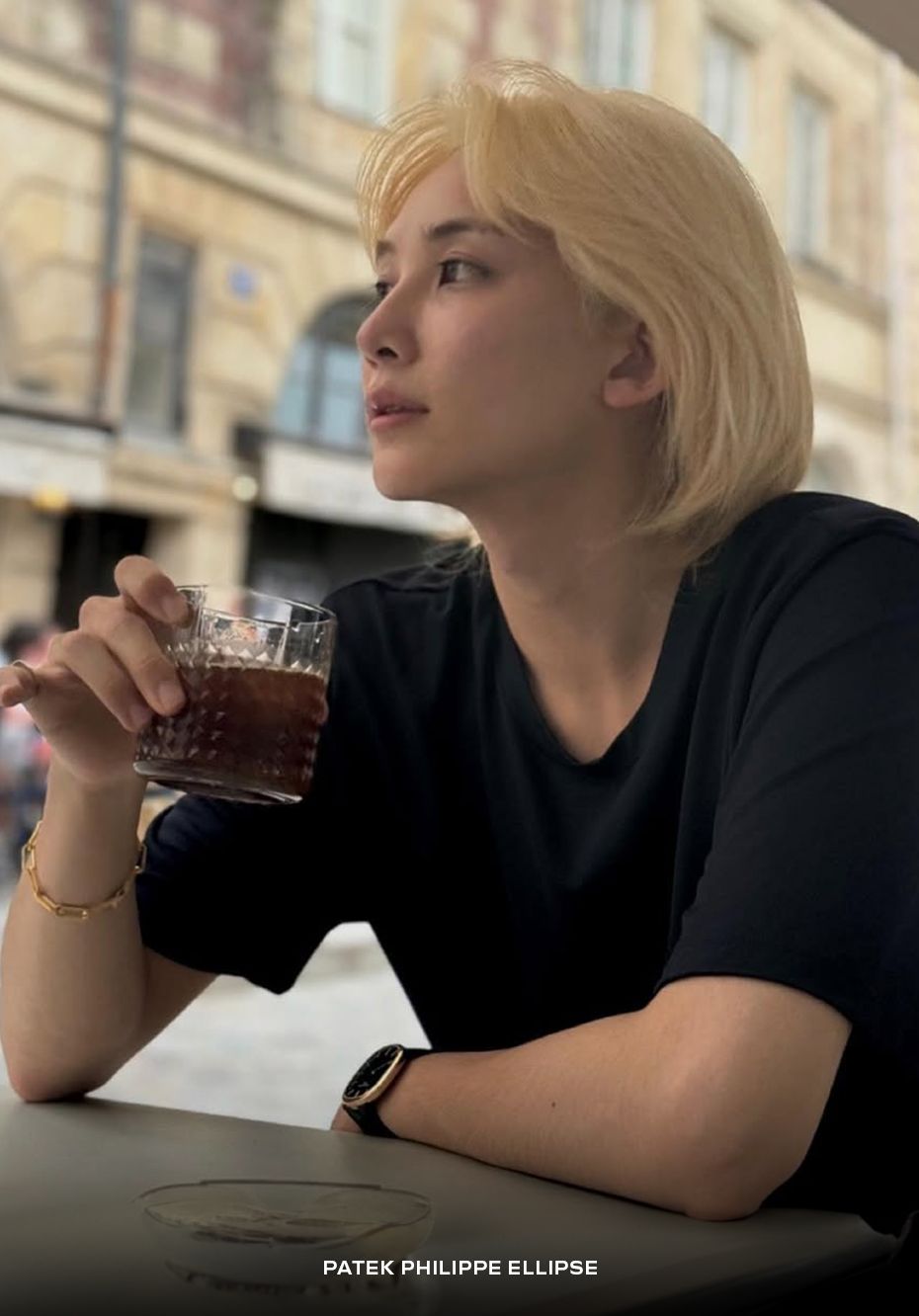 Seventeen proves that a single group can cover the entire spectrum of high watchmaking. Leader S.Coups goes bold with a Roger Dubuis Excalibur Spider Huracán, a 45mm titan in titanium with green accents, a natural fit for someone whose presence is built on intensity. Jeonghan, on the other hand, gravitates towards understatement, often wearing a Patek Philippe Ellipse in rose gold with a black alligator strap.