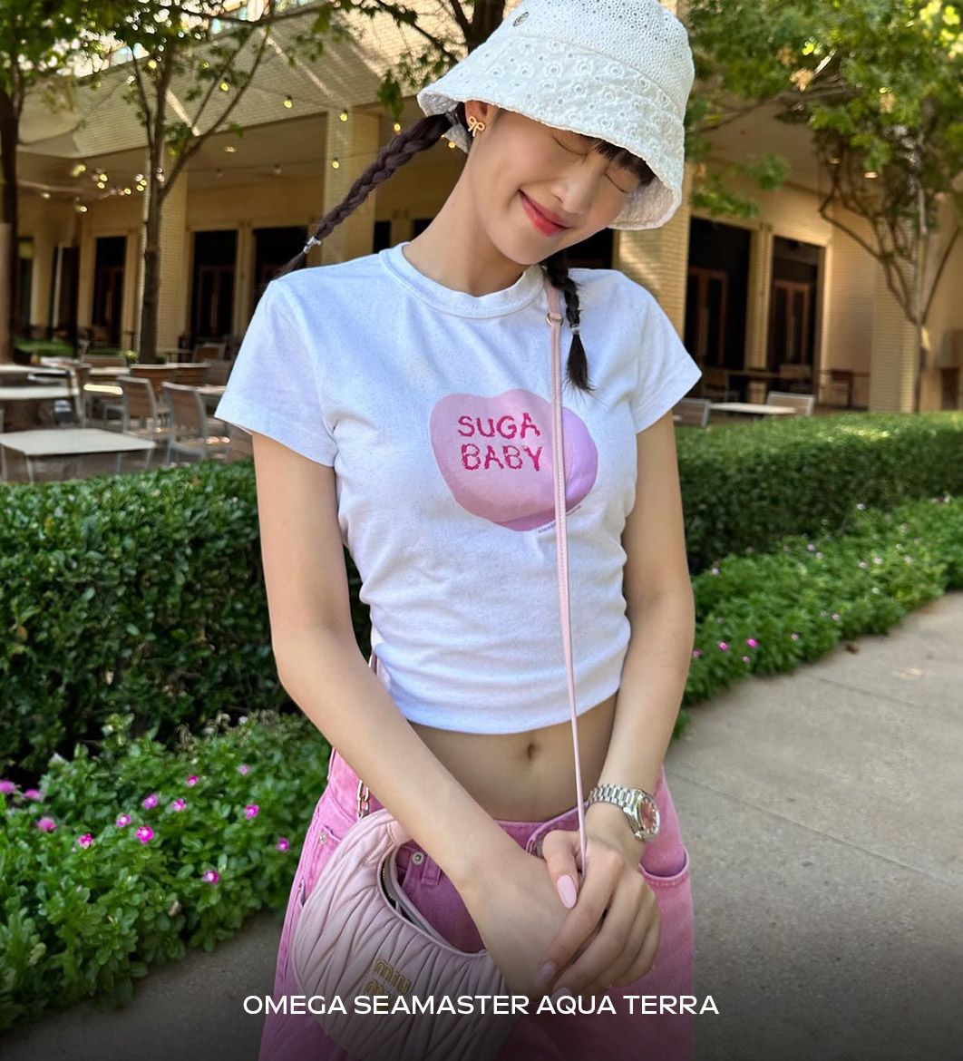 (G)i-dle Minnie’s Omega Seamaster Aqua Terra in baby-pink dial positions itself as a technical diver-inspired model within a space of playful femininity. The watch underscores Omega’s ability to balance heritage with stylistic adaptability — pivoting from its oceanic DNA to become a symbol of fashion-forward horology.