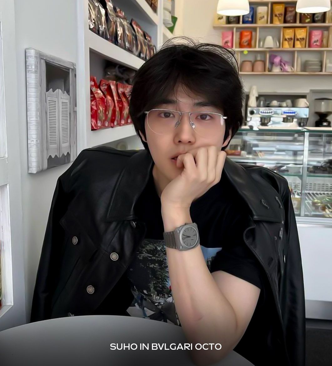 EXO’s Suho leans into quiet modernism, favouring watches that articulate refinement through precision rather than spectacle. His Bvlgari Octo Finissimo, celebrated for its razor-thin profile and architectural lines, mirrors this approach perfectly, complementing a polished, almost academic style. The watch’s clean geometry and subtle presence allow it to function as both a statement of taste and a study in restraint.
