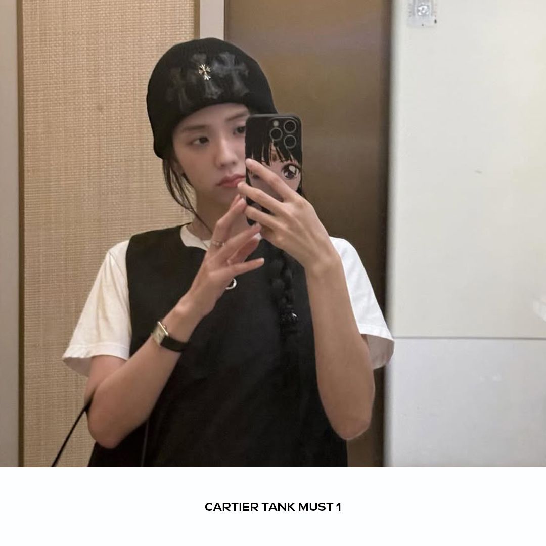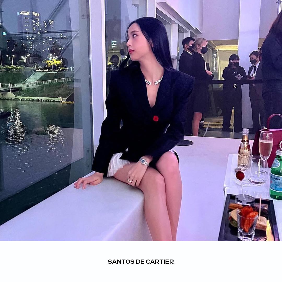 Her collection extends beyond this icon with the Panthère de Cartier, which functions as both jewellery and timepiece, while the Tank Must introduces a modern, colour-driven minimalism. Santos de Cartier, a steel model with QuickSwitch straps and a deep-blue dial, reflects her nuanced appreciation for functionality and classic form. Jisoo’s selection navigates the full spectrum of Cartier’s influence, blending artistry, technical sophistication, and stage-ready presence.
