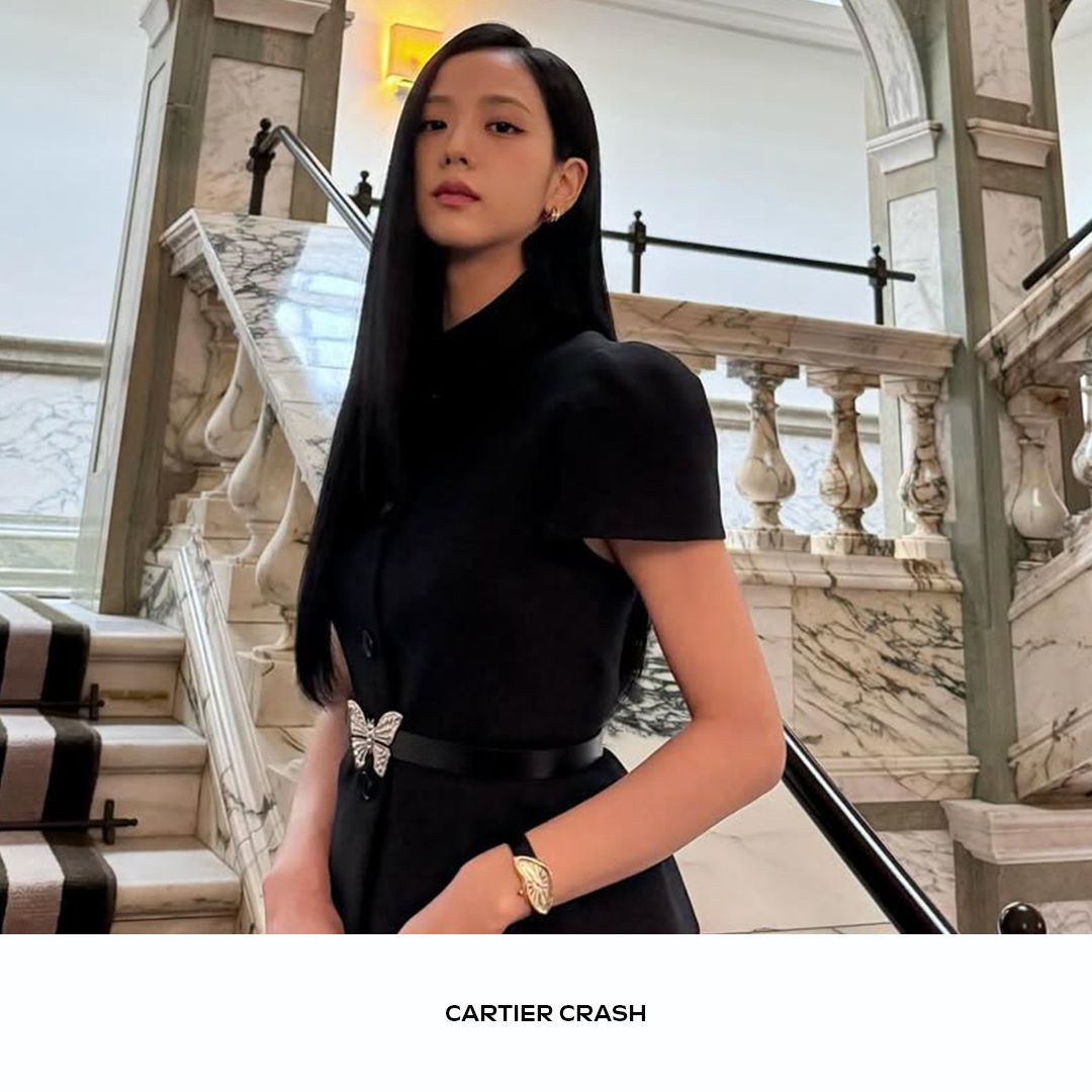 As Cartier’s global ambassador, Jisoo navigates the maison’s legacy with discernment, her collection reflecting both historical significance and contemporary expression. Jisoo’s most memorable watch moment came at Buckingham Palace, where she wore the Cartier Crash, a surrealist icon whose “melted” case remains one of horology’s most coveted designs.