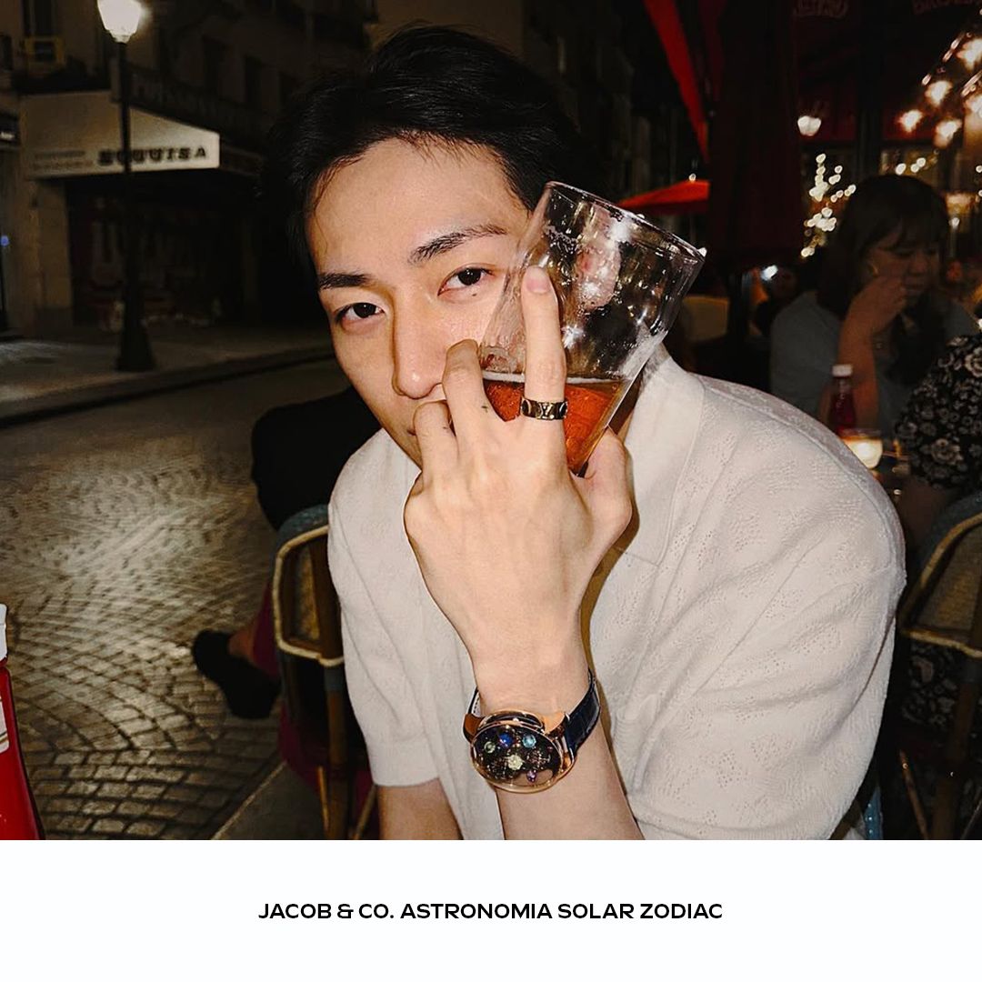 Where some K-pop idol watch collections lean toward subtlety, BamBam of GOT7 makes spectacle his signature. His collection reads like a theatre of excess, led by the Jacob & Co. Casino Tourbillon, a roulette table rendered in mechanical artistry. Another standout is the Astronomia Solar Zodiac, a kinetic constellation encased in sapphire, which he was spotted wearing courtside at an NBA game. He complements these with an iced-out Audemars Piguet Royal Oak and a Patek Philippe Nautilus Ref. 5719, saturated with over 1,300 diamonds. BamBam’s horological collection is unapologetically loud, reflecting a philosophy that luxury should dazzle, provoke, and command attention.