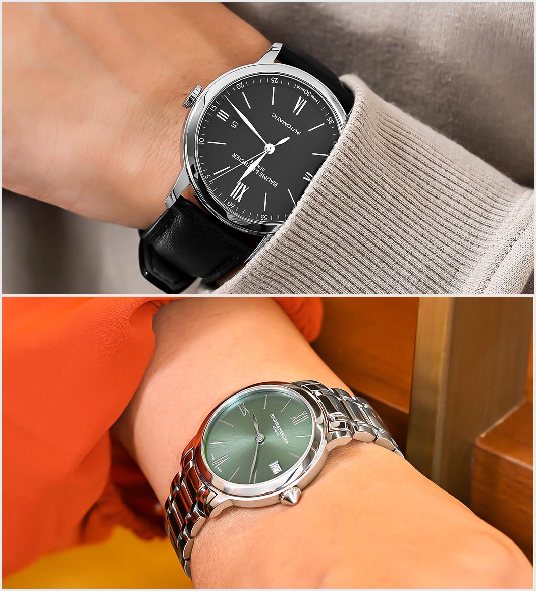 The Baume & Mercier Classima is a contemporary interpretation of the brand’s nearly 200-year-old watchmaking heritage. The Classima was first introduced in 2016 and combined traditional watch simplicity with modern complexity. This collection enters the historically rich realm of Baume & Mercier and presents a duality with underpinning intricacies and aesthetics from the 1940s. It heralds the saga of inexpensive yet sumptuous dress watches marked with sharp lines and Roman numerals. Additionally, this line provides a range of functional elements, including moon phase, dual time, small seconds, and chronograph.