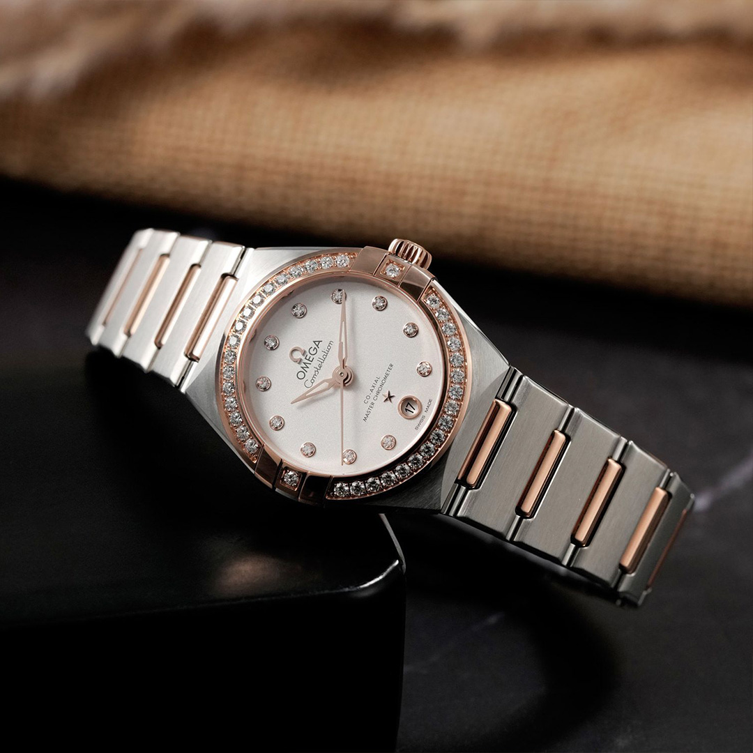 An ode to elegance with a touch of celestial allure, the Omega Constellation redefines modern luxury in a delicately sculpted 29mm silhouette. A seamless composition of cool stainless steel and Omega’s own Sedna™ gold, its signature claws curve protectively around a diamond-set bezel.
