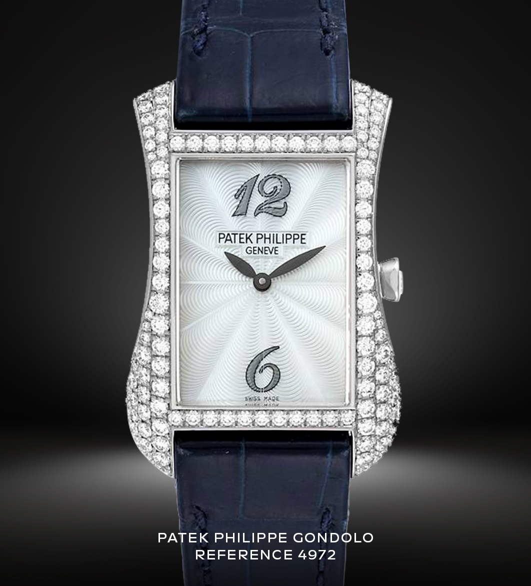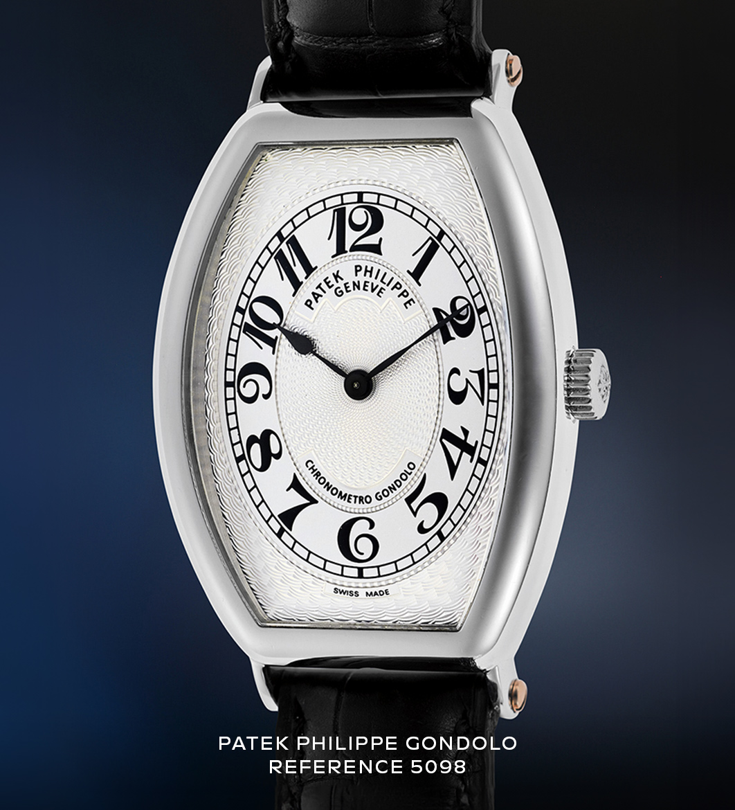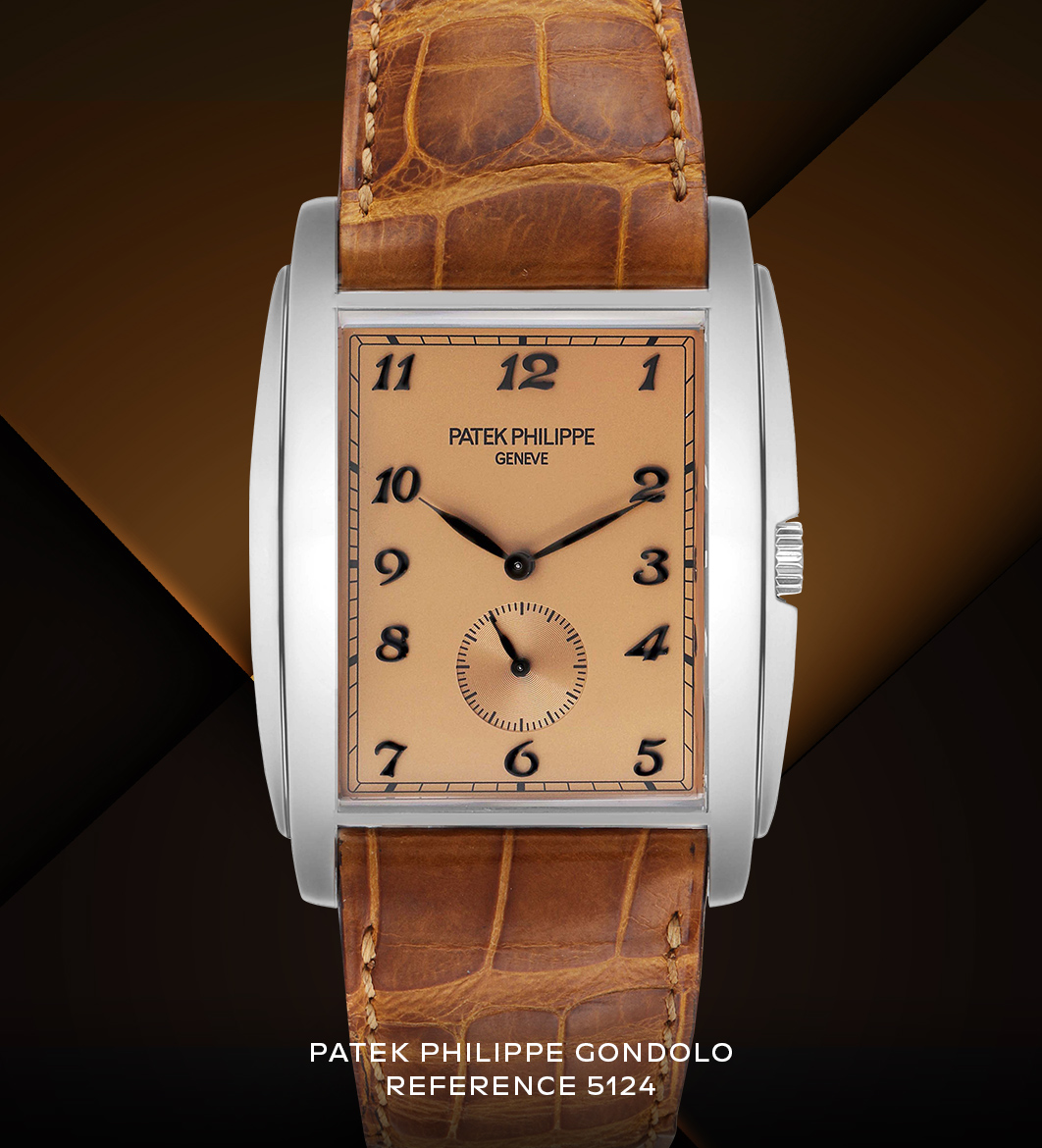 The Patek Philippe Gondolo collection revives the glamour of rectangular, tonneau, and cushion-shaped cases, a refined nod to the era’s symmetry and simplicity. Now available at Second Movement, this distinctive timepiece represents one of watchmaking’s most successful experiments in geometric elegance.
