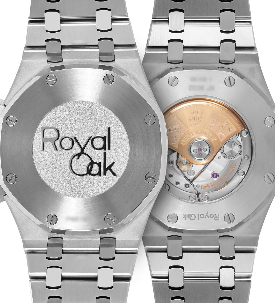 A Royal Oak can either have a solid or an exhibition caseback. The name of the collection should be present on the caseback, however, its placement could vary from model to model. A genuine Audemars Piguet Royal Oak will feature important hallmarks, for instance, the reference or serial numbers. Such numbers must be verified in order to establish the watch’s authenticity. In addition, limited edition watches might have elaborate imagery or script. All engravings should be legible, clean, and of high quality. Fakes will often have substandard engravings and can be missing letters or numbers.