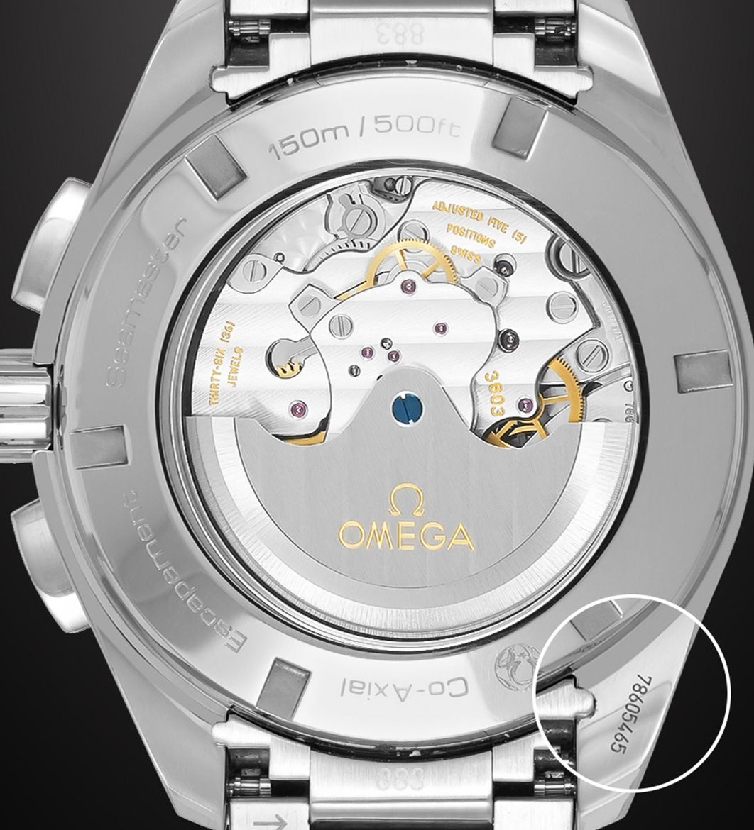 The serial number on the case is a unique identifier assigned to each Omega watch and can be used to trace its origin. Counterfeiters often add random digits as serial numbers on knock-offs. Hence, it’s imperative to check the serial number and make sure it matches the model you’re examining to ensure you’re not dealing with a fake watch.