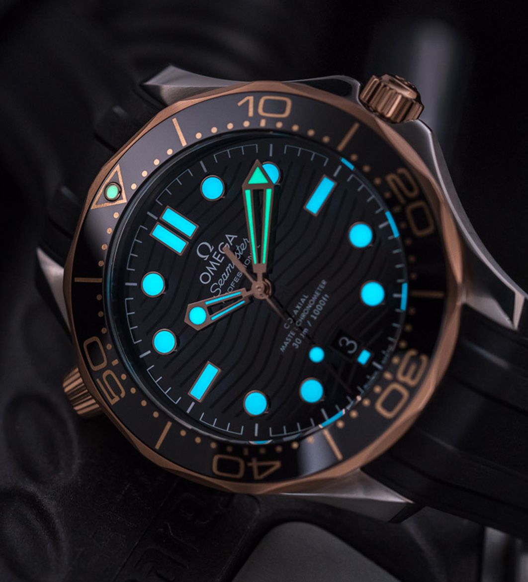 Omega uses Super-Luminova, a premium luminescent material, in its watches to enhance their readability in low-light conditions. It is a proprietary material developed by a Swiss company called RC TRITEC. Omega incorporates Super-Luminova into the hour markers, hands, and sometimes even on other elements like bezel markers. The luminescent material allows the watch to be easily read in various lighting conditions, ensuring optimum legibility. Over the years, Omega has utilized different versions of Super-Luminova, such as Super-Luminova BG W9, C1, or C3, each with its specific glow colour and intensity. These variations offer different luminous properties, allowing Omega to tailor the luminescence to suit the design and functionality of their watches. To test the luminescence of an Omega watch, you can follow a simple process. First, put the watch under a bright light for at least 15 seconds. Once it has been charged, turn off the light and observe the glow from the timepiece. A genuine Omega watch should produce a bright and even glow that lasts relatively longer. If the lume produces a dim or uneven glow, it may be an indication that your Omega is not genuine.