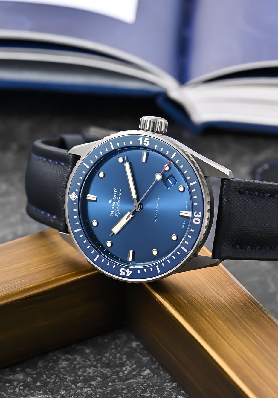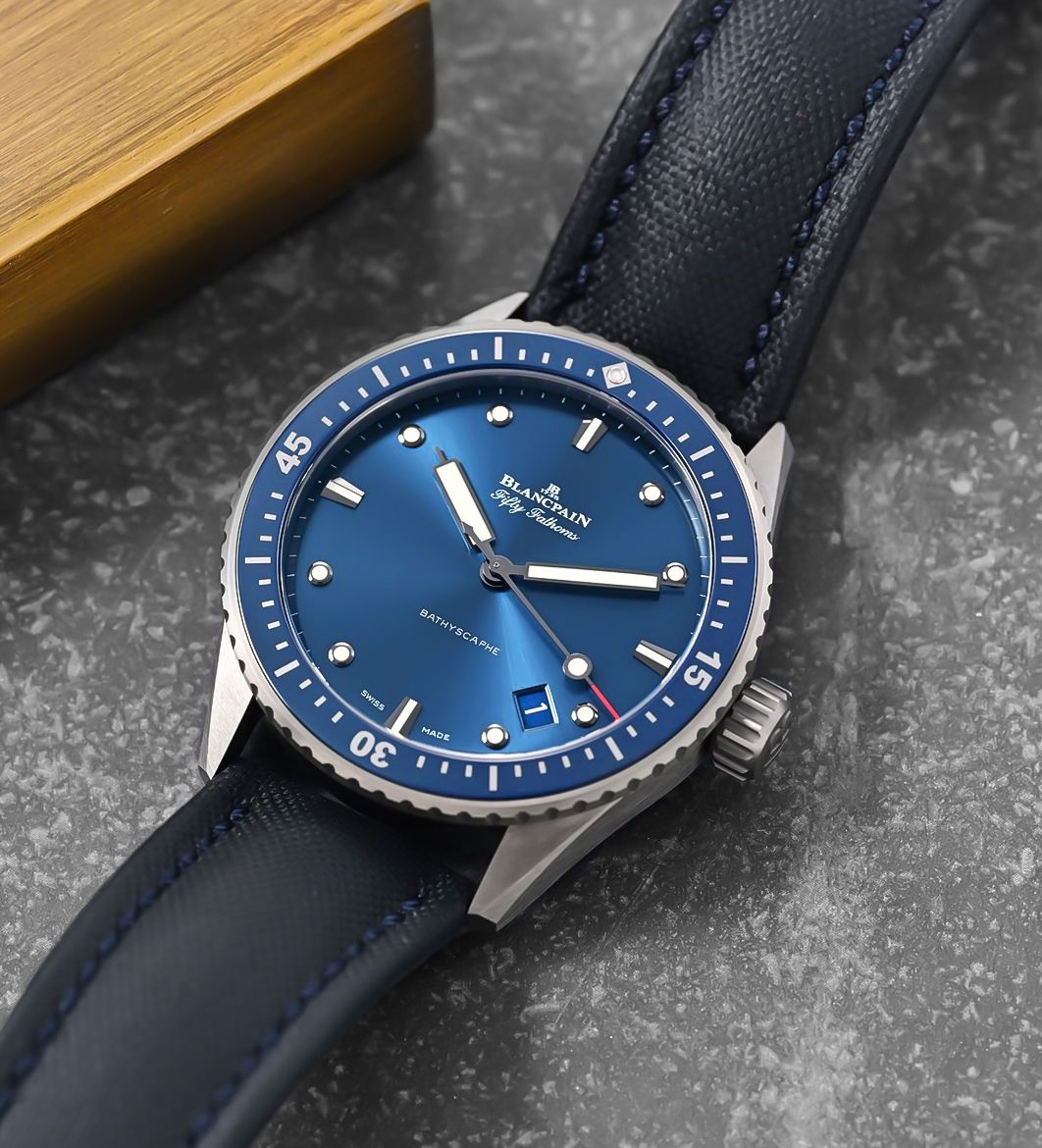 While the monochromatic palette nods to a utilitarian aesthetic, Blancpain injects bold blue contrast through the sunray dial. Beneath, the self-winding calibre 1315 powers 120 hours of reserve. Visible through a sapphire caseback, its decorated bridges and silicon hairspring promise chronometric precision to 30 bar water resistance. With these precise and practical features, Blancpain’s Bathyscaphe leverages high-performance ceramic for everyday urban exploration or offshore diving.