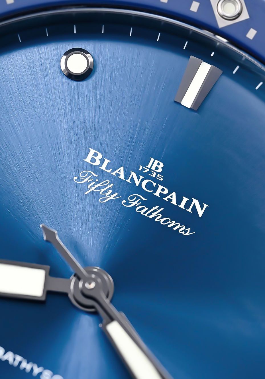 The striking blue ceramic dial includes an orange 24-hour GMT scale. Arrow-tipped hands join diving indexes in 18K white gold, emitting a blue glow thanks to white SuperLumiNova. An orange seconds hand provides a nice burst of colour alongside the date window at three o’clock.