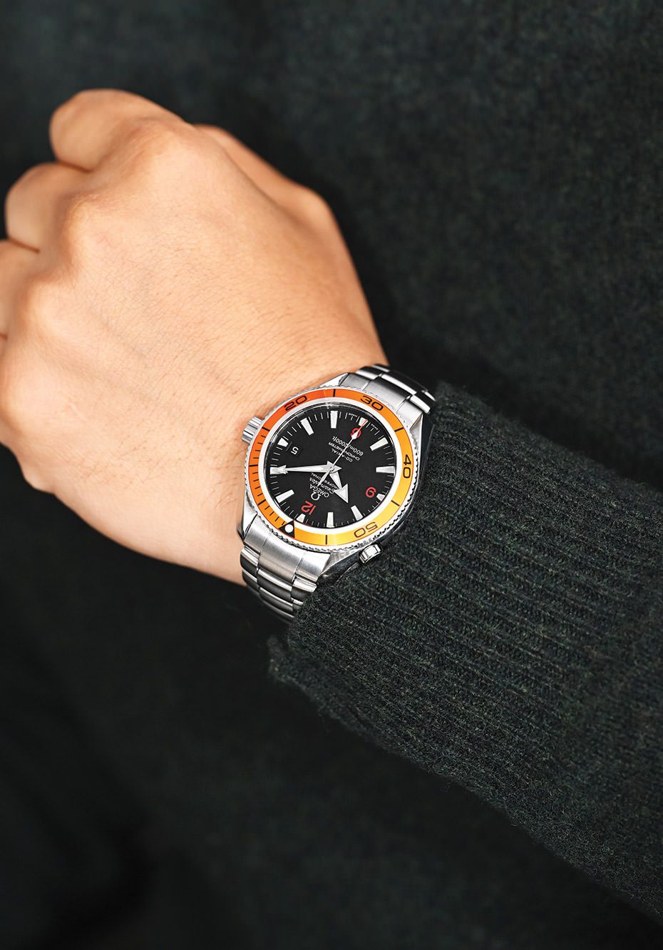 The Seamaster Planet Ocean watch collection officially unveiled in 2005, commemorates Omega‘s illustrious aquatic lineage. These enduring Swiss timepieces are not just for divers; they are perfect for anyone who values style and performance. Planet Ocean models usually come in sizes of 37.5mm, 39.5mm, or 43.5mm, in addition to the more oversized 45.5mm chronograph editions with various strap options, including rubber straps, NATO straps, metal bracelets, and leather straps.