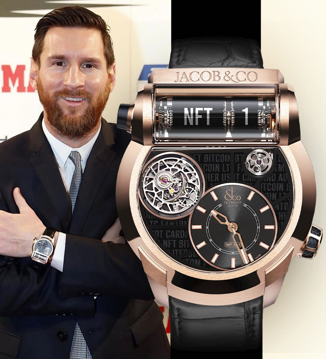 Messi has been an admirer of Jacob & Co.’s unconventional watchmaking even before his collaboration with the maison. In 2018, he matched his crisp black-tie look with the extraordinary Epic SF24 Tourbillon while receiving his record 5th Golden Boot award. It’s a world traveller’s watch with a unique second-time zone display. Its flying tourbillon complication, singular case design, and simple time-reading mechanism manifest Jacob & Co.’s strength in aesthetical balance, engineering, and design genius.
