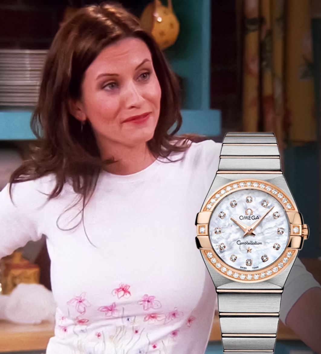 The Omega Constellation 27mm captures Monica’s poised, detail-driven nature with graceful precision. This model, with its 18k rose gold accents and diamond-set bezel, has an understated opulence—much like Monica, who is classic in her taste but never lacking in personality. The mother-of-pearl dial, framed by the iconic Constellation claws, speaks to her love of tradition, while the precise quartz movement echoes her meticulous standards. Just as Monica brings order and warmth to chaos, this refined timepiece blends technical brilliance with enduring style.