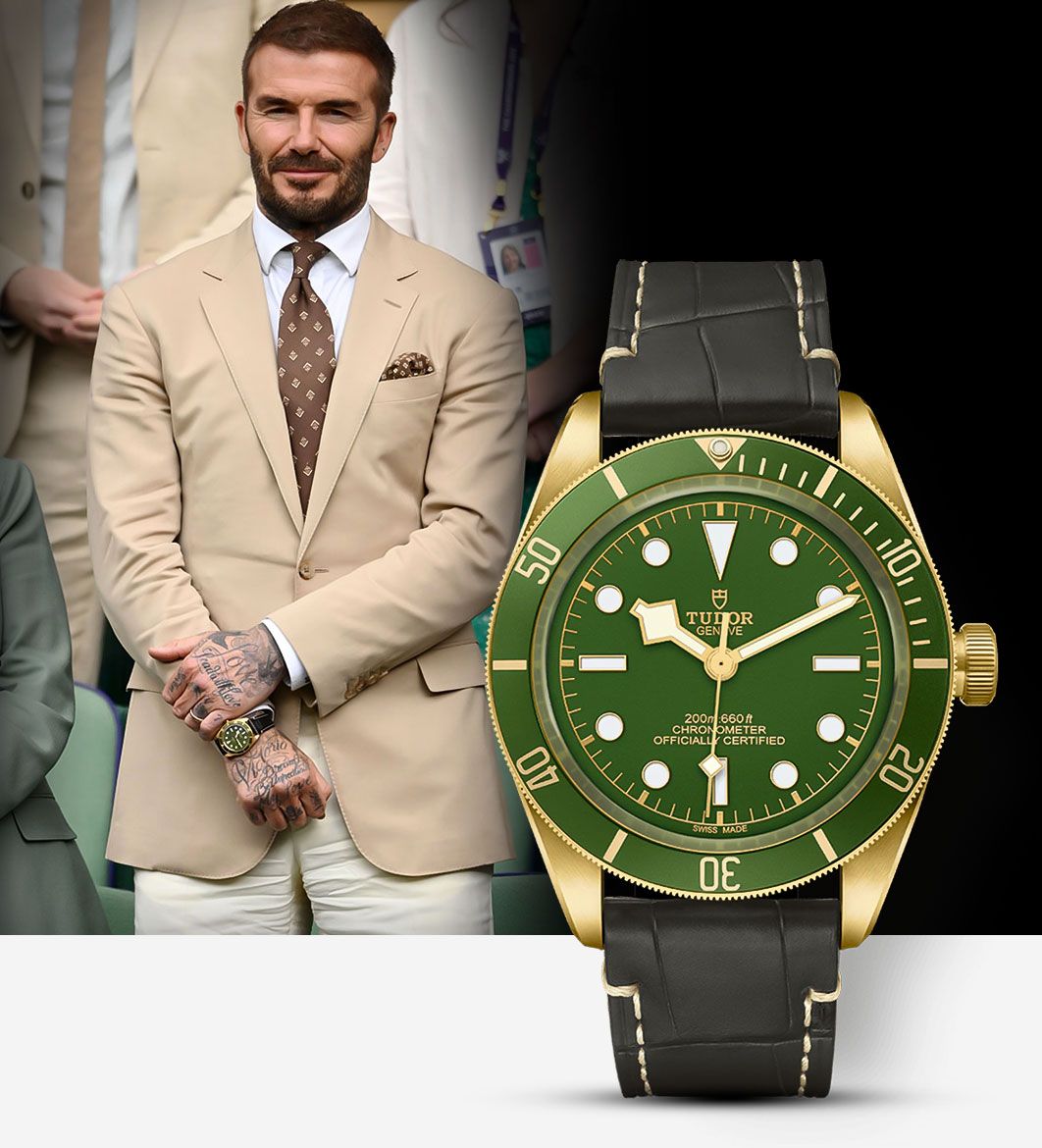 A football legend and fashion icon – David Beckham, graced Wimbledon in his signature suave style. While his Ralph Lauren look with a Purple Label jacket, printed silk pocket square, and tie was enough to drool over, the Tudor Black Bay on his wrist stole the real show. As the brand ambassador of Tudor, the former England captain did justice to the reference M79018v-0001. Running on calibre MT5400, the Black Bay 58 is a sleek 39 mm timepiece in a stunning 18K yellow gold case, further accentuated by the green shade of the dial. The brown alligator strap adds charm, making this a timeless addition to any collection.