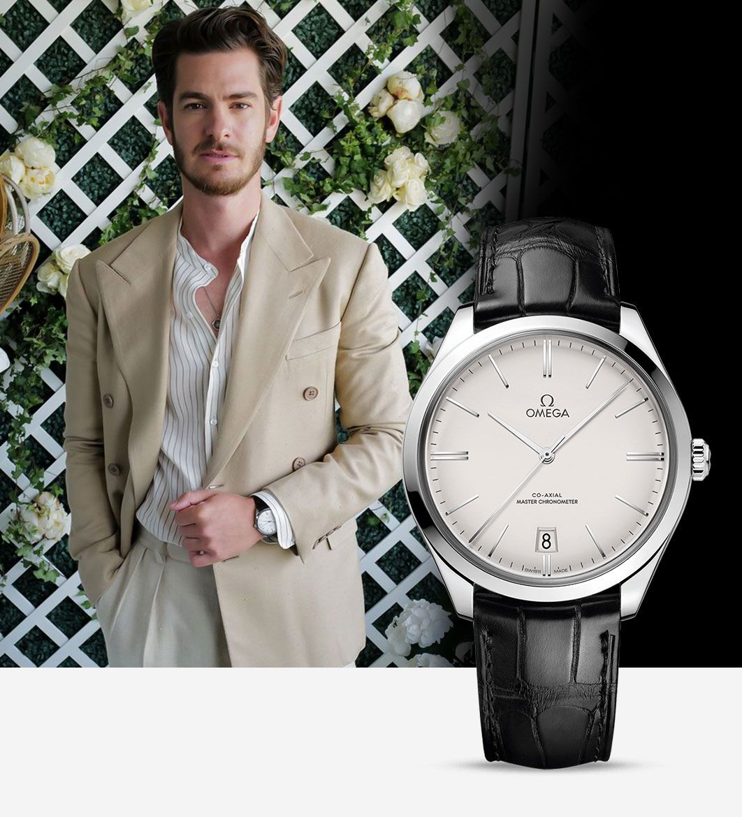 Much like Dr Strange (Cumberbatch), another superhero made sure to make his presence felt at the Wimbledon finals – sitting beside Ariana Grande was our Spiderman, Andrew Garfield. Looking dapper in a yellow-tan linen blazer and tan pleated trousers paired with a collared lilac shirt from the Purple Label collection by Ralph Lauren, complete with chocolate loafers, Garfield exuded rugged charm as he witnessed the exceptional game between Carlos Alcaraz and Novak Djokovic. He completed his look with an Omega De Ville Trésor in a 40mm stainless steel case paired with a black leather strap.