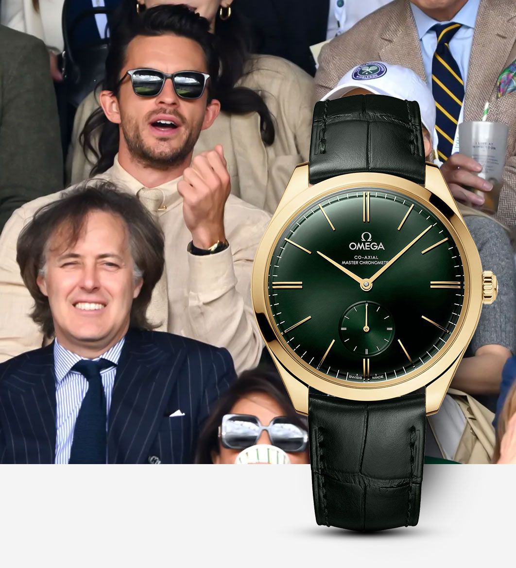 Another star spotted in an Omega De Ville Trésor was the very handsome Bridgerton actor Jonathan Bailey. He wore a gorgeous green dial version, reference 435.53.40.21.10.001, rendered in 18k yellow gold. Measuring 40mm, the watch features an exhibition caseback and a complementing green leather strap. Inside the hood, Co-Axial Master Chronometer calibre 8927 ensures a power reserve of 72 hours.